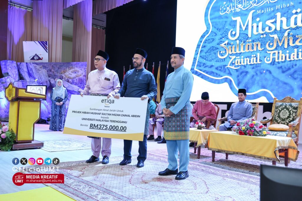 Peranan itu dizahirkan menerusi penganjuran Majlis Hibah Mushaf Sultan Mizan Zainal Abidin yang berlangsung di Dewan Sultan Mizan, UMT hari ini hasil kerjasama strategik universiti berkenaan dengan Etiqa Family Takaful Berhad.