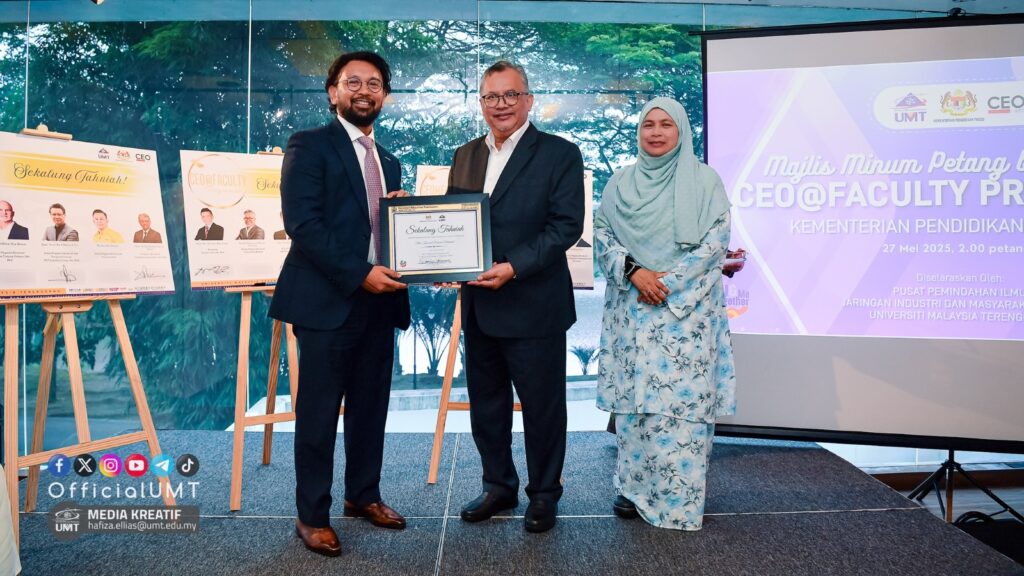 PUTRAJAYA, 27 Mei 2025 – Universiti Malaysia Terengganu (UMT) terus memperkukuh kedudukannya sebagai peneraju dalam bidang sains marin dan kelestarian sumber akuatik menerusi jalinan strategik bersama pemimpin industri menerusi Program CEO@Faculty iaitu platform perkongsian berimpak tinggi hasil inisiatif Kementerian Pendidikan Tinggi (KPT) bagi memperkasa pendidikan tinggi negara dengan penglibatan wakil industri.