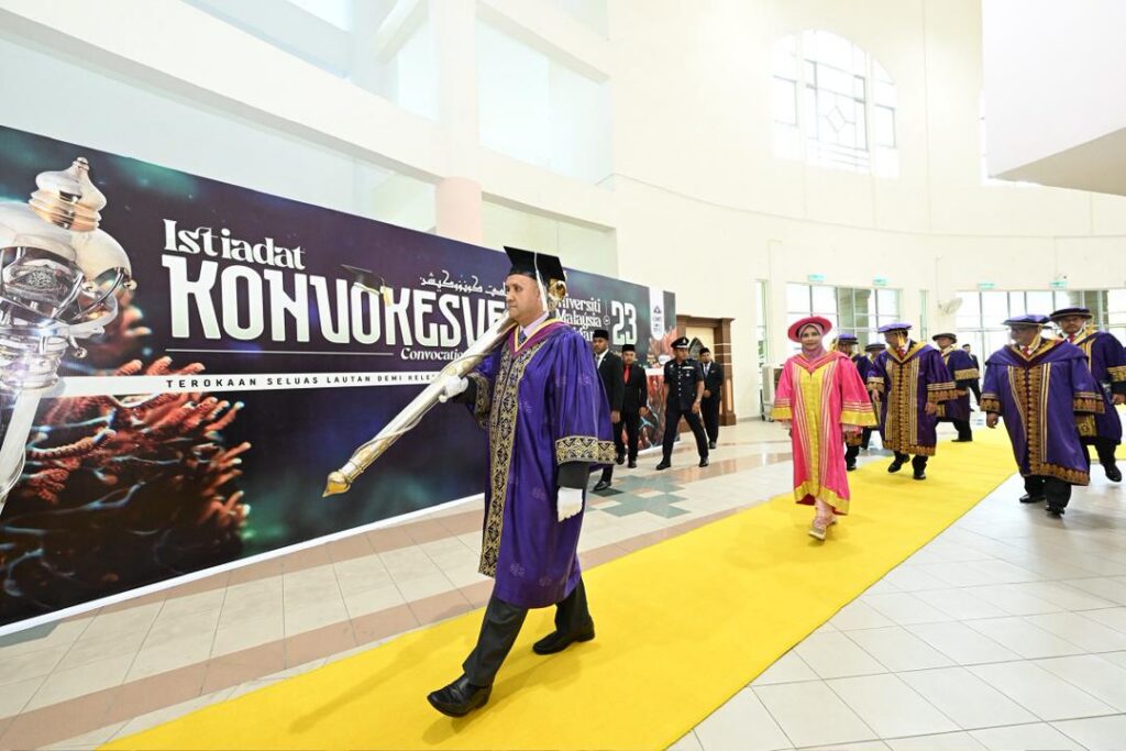 Her Royal Highness Sultanah Nur Zahirah, Chancellor of Universiti Malaysia Terengganu (UMT), graciously officiated the 23rd UMT Convocation Ceremony at UMT’s Sultan Mizan Hall.