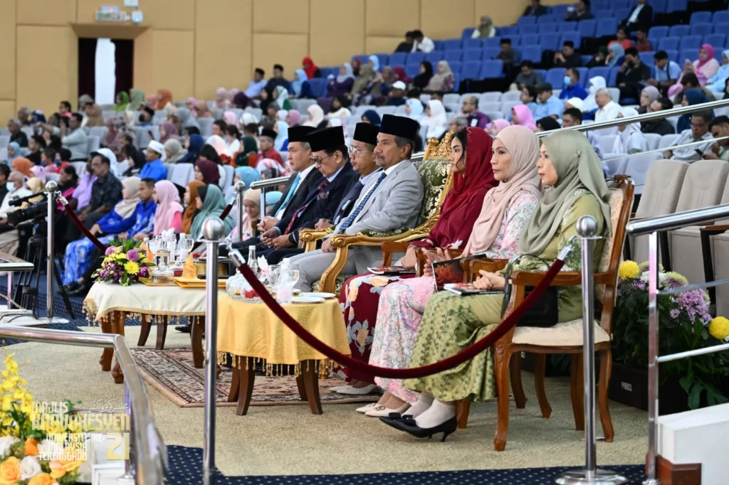 Kebawah Duli Yang Maha Mulia (KDYMM) Sultanah Nur Zahirah berkenan membuka sidang pertama Majlis Konvokesyen UMT di Dewan Sultan Mizan, UMT hari ini. Sultanah Nur Zahirah yang juga Canselor UMT dalam titah baginda menzahirkan ucapan tahniah kepada semua graduan UMT dan penerima anugerah pada majlis berkenaan.
