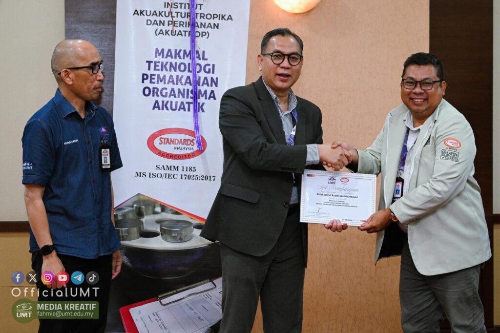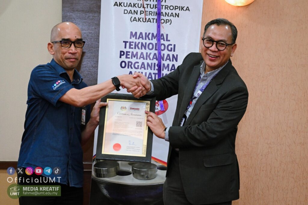 Dalam majlis peluncuran akreditasi MS ISO/IEC 17025:2017 baru-baru ini, Naib Canselor UMT, Prof. Ts. Dr. Mohd Zamri Ibrahim mengumumkan pengiktirafan terkini makmal penyelidikan Institut Akuakultur Tropika dan Perikanan (AKUATROP) sekali gus menjadikannya institusi keempat di kampus itu menerima persijilan akreditasi daripada Jabatan Standard Malaysia.