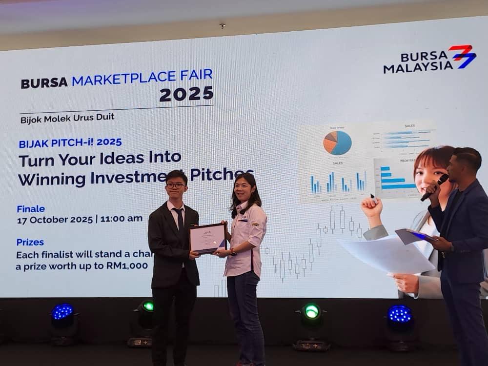 KUALA NERUS — Kejayaan membanggakan sekali lagi dicatatkan oleh Universiti Malaysia Terengganu (UMT) apabila pelajarnya, Wong Chee Yew berjaya menarik perhatian panel juri dan memperoleh undian tertinggi juri dalam Pertandingan Bijak Pitch-i! 2025 yang dianjurkan bersempena Bursa Marketplace Fair 2025 di Mayang Mall.