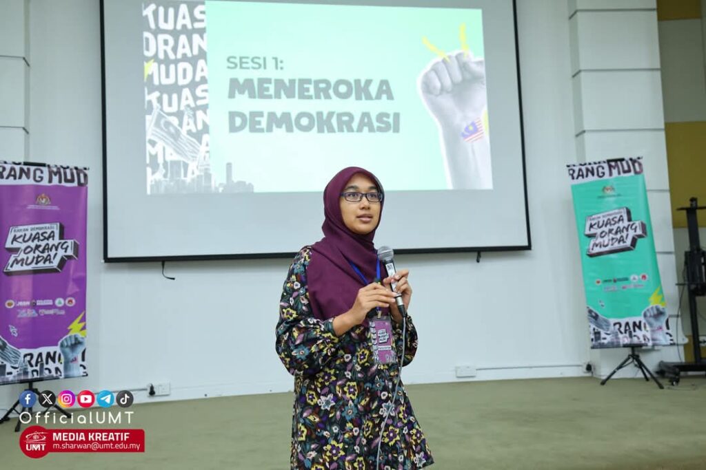 Kuala Nerus, 10 Januari 2025 – Seramai 230 pelajar Universiti Malaysia Terengganu (UMT) telah mengambil bahagian dalam program Rakan Demokrasi: Kuasa Orang Muda Bagi Zon Timur (Terengganu) 2025 yang berlangsung di Dewan Persidangan 2, UMTCC, UMT baru-baru ini, Program ini adalah inisiatif anjuran Kementerian Belia dan Sukan (KBS) dengan kerjasama Pertubuhan Nusa Bangsa (NUSA), Jabatan Pengajian Kenegaraan dan Ketamadunan (JPKK), Fakulti Ekologi Manusia, Universiti Putra Malaysia dan Hal Ehwal Pelajar dan Alumni (HEPA), UMT.