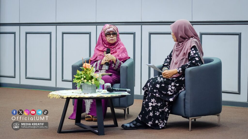 KUALA NERUS, 7 Mei – Kehadiran Sasterawan Negara Ke-14, Datuk Dr. Siti Zainon Ismail ke Universiti Malaysia Terengganu (UMT) nyata memberi impak besar kepada warga kampus apabila beliau berkongsi pengalaman, ilham dan semangat kecintaan terhadap tanah air melalui karya sastera dalam program Minda Kreatif Sasterawan Negara, semalam.