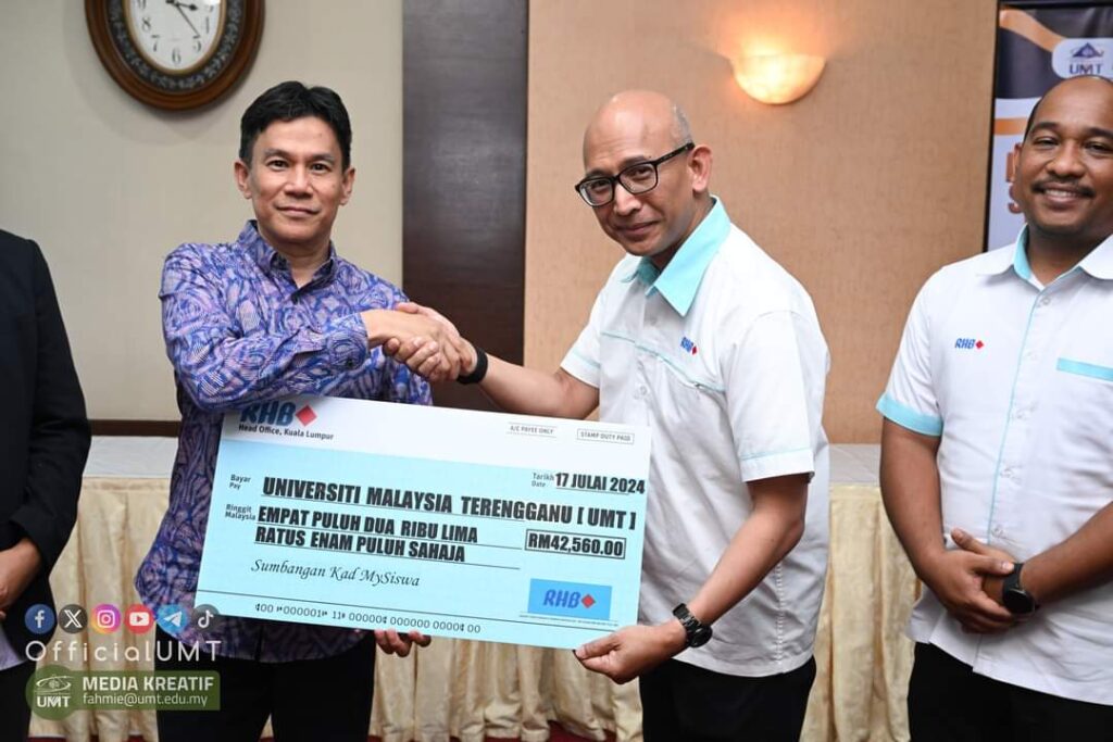 UMT receives RM64,060.00 from RHB Bank Tuesday, 6/8/2024 Share This Article : Kuala Nerus – Universiti Malaysia Terengganu (UMT) has received a total of RM64,060.00 from donations by corporate agencies for the purpose of helping the poor students affected by the flood last and maintaining the welfare of its students.  UMT Deputy Vice Chancellor […]