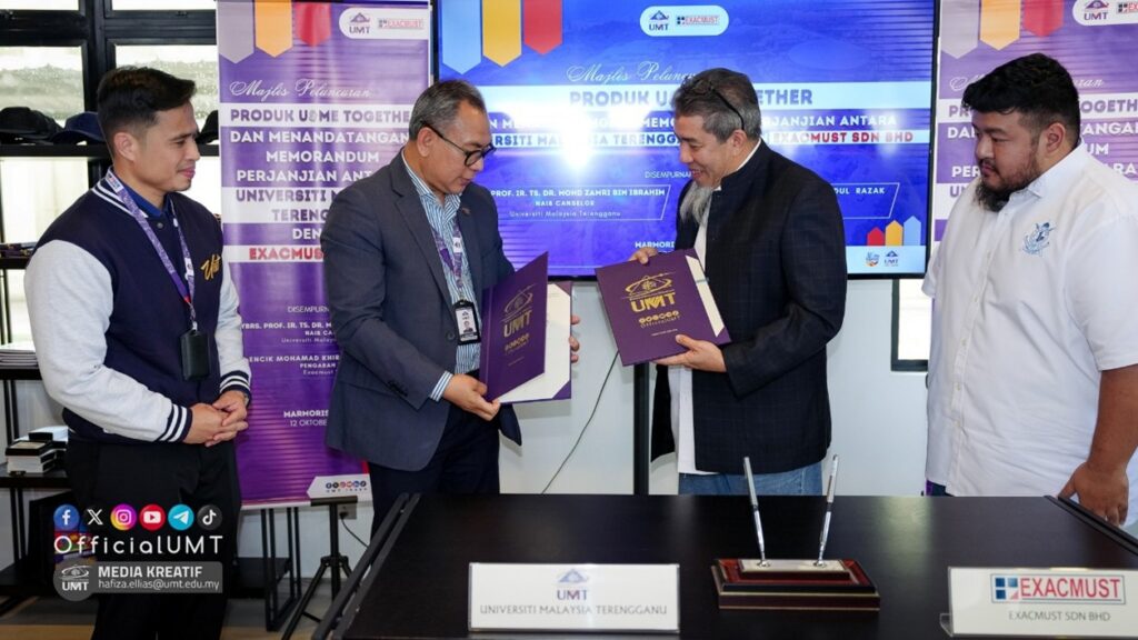 The proactive initiative has recently been realised through the signing of a Memorandum of Understanding (MoU) between UMT and Exacmust Sdn. Bhd., held at the UMT campus. The event also featured the launch of the exclusive U&ME Together (Special Edition) product, a creative collaboration between both parties symbolising unity and belonging among members of the university community.