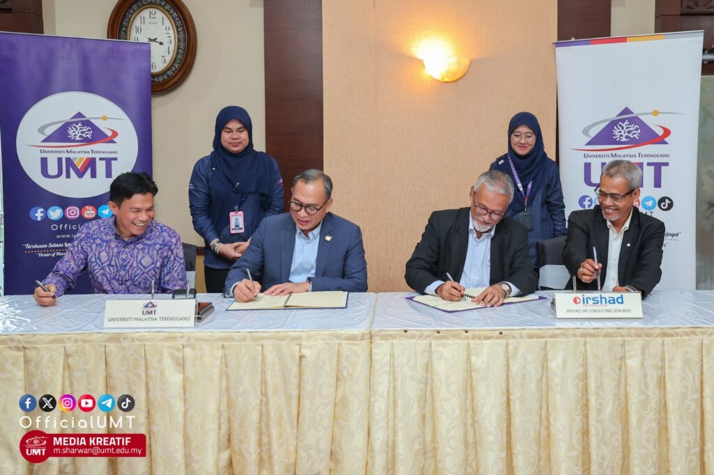 Majlis menandatangani Memorandum Persefahaman (MoU) antara UMT dan Irshad HR Consulting Sdn. Bhd. serta Surat Hasrat (MoU) antara UMT dan Hainan Tropical Ocean University (HTOU), China telah berlangsung di Kampus UMT Gong Badak.